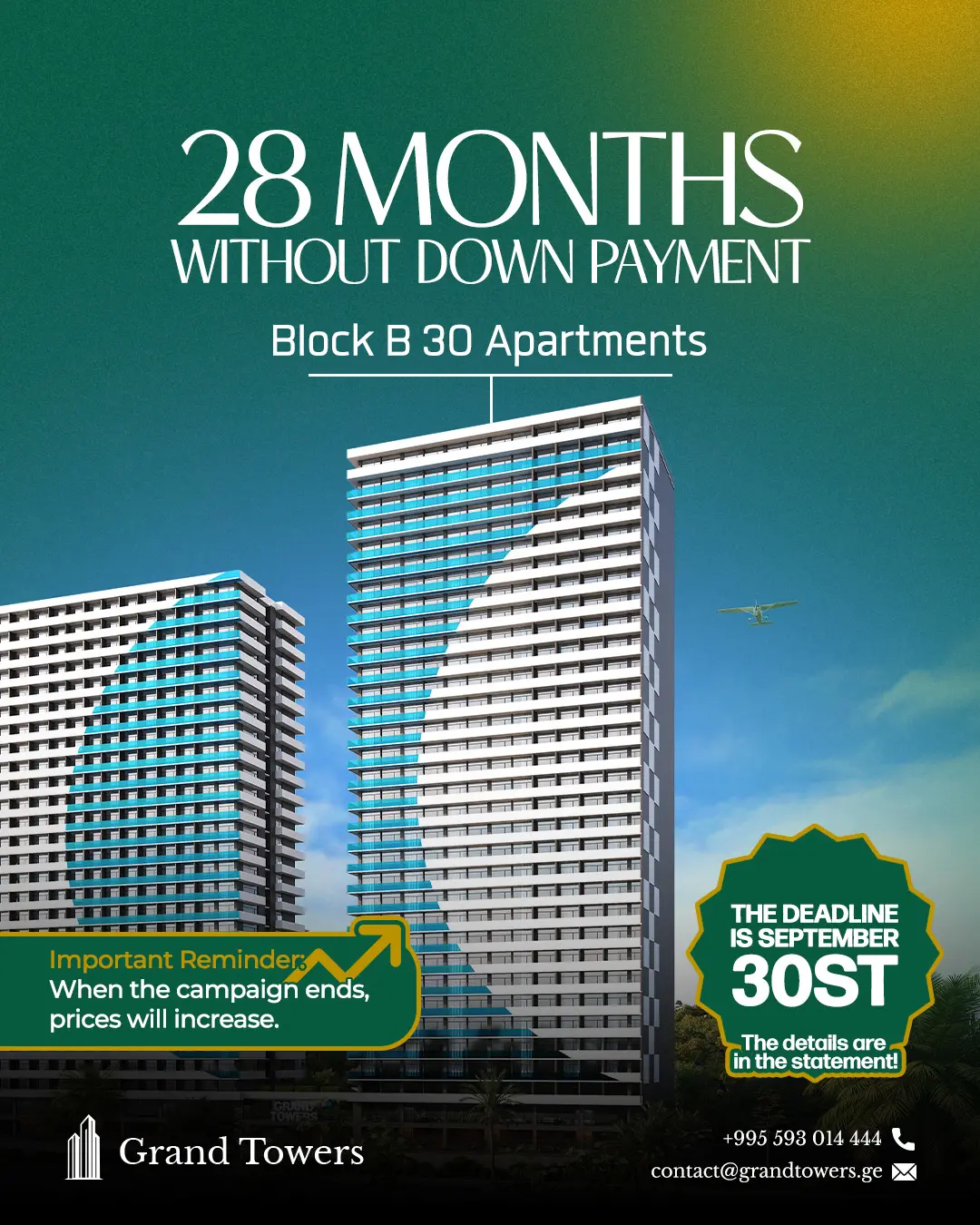 Gürcistan'ın yükselen değeri Grand Towers için geliştirilen, yüksek dönüşüm odaklı taksitli satış kampanyası ve görsel iletişim stratejisi.